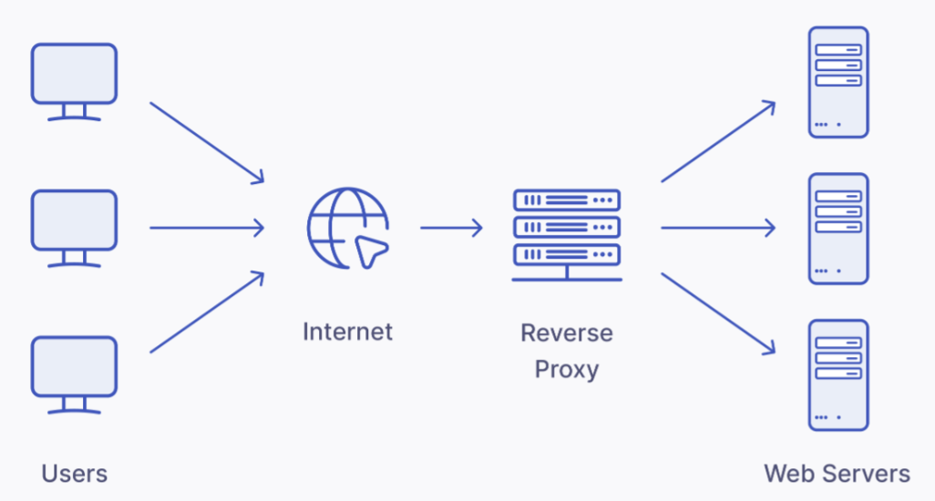 - 주로 웹 서비스의 가용성, 보안 및 성능을 향상시키기 위해 사용된다. 리버스 프록시는 로드 밸런싱을 통해 서버 부하를 분산시키고, 보안을 강화하기 위해 외부로부터 직접적인 접근을 막을 수 있다. 또한 SSL 종단점을 관리하고 캐싱을 통해 서버 부하를 줄일 수도 있다.