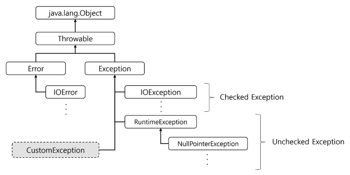 크게 Checked Exception과 Unchecked Exception으로 구분할 수 있다.